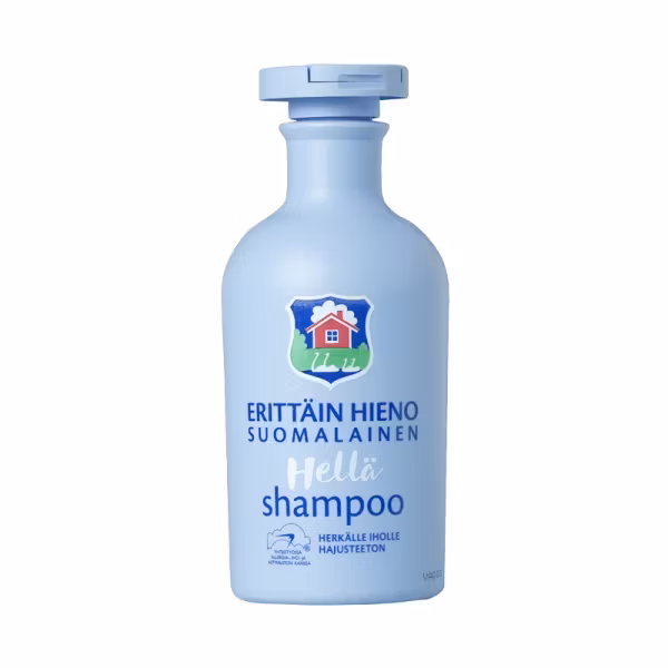 Erittäin Hieno Suomalainen Hellä Schampo är tillverkad av väl utvalda råvaror. Det oparfymerad, milda och återfuktande formula ger håret glans och mjukhet. Passar för alla hårtyper. Vegansk och bionedbrytbar sammansättning. Dermatologiskt godkänd. Produkten är tillverkad i Finland och den har beviljats Nyckelflaggan -märket.